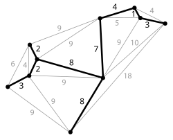 - ↑ R.C. Prim, « Shortest connection networks and some generalizations », Bell System Technical Journal, The, vol. 36, , p. 1389-1401 (ISSN 0005-8580, DOI 10.1002/j.1538-7305.1957.tb01515.x, lire en ligne, consulté le )