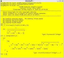 Par exemple, Axiom (voir l'illustration ci-dessus) peut trouver une primitive élémentaire pour la fonction de l'exemple précédent :
