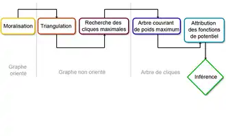 Un arbre de jonction est une factorisation partiellement préconstruite. C'est un graphe de cliques construit de manière que le produit des fonctions de potentiels soit égal à la probabilité conjointe de l'ensemble des variables.