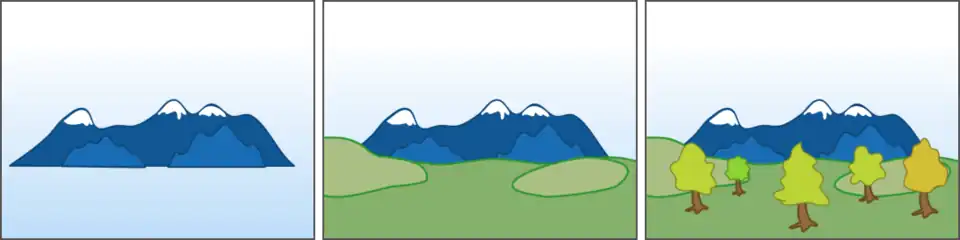 Le nom d'« algorithme du peintre » fait référence à un peintre qui dessinerait les parties lointaines d'une scène avant les parties proches. L'algorithme du peintre trie tous les polygones de la scène par rapport à leur distance de la caméra, du plus éloigné au plus proche, et les dessine dans cet ordre. Cela aura pour effet d'afficher les plus lointains avant les plus proches, ces derniers recouvrant les autres. Cela résout le problème de visibilité.