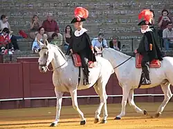 Les alguazils contemporains interviennent dans les arènes. Ils sont vêtus de noir, à la mode des seigneurs de Philippe II d'Espagne, (XVIe siècle) selon Jean Testas[3] ou comme les officiers de police de Philippe IV d'Espagne, (XVIIe siècle) selon Paul Casanova et Pierre Dupuy[4]. S'ils symbolisent toujours l'ordre, ils sont surtout un souvenir du passé.