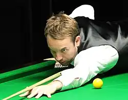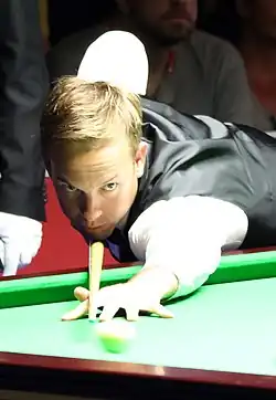 Ali Carter jouant une bille en piqué.