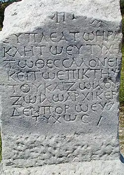 De nombreuses inscriptions ont été découvertes dans les vestiges du sanctuaire, qui permettent d'en préciser la fonction. On y trouve en effet de nombreux vœux de bonne navigation (euploia) laissés par les armateurs ou les marins pour les navires venus prendre livraison du marbre dans les carrières voisines. Ces navires portent les noms de divinités (Héraclès — voir la photographie ci-contre — Sarapis, Poséidon, Artémis ou encore Asclépios) et leurs ports d'attache fournissent d'utiles indications sur la structure du commerce du marbre : Thessalonique, Assos, Mytilène, la Troade. L'une de ces inscriptions votives est adressée aux « Dieux sauveurs », c'est-à-dire aux Dioscures, divinités protectrices des marins.