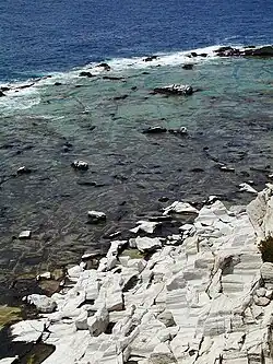 Le promontoire d’Aliki est un éperon de marbre exploité probablement dès le début de l'occupation de l'île, au VIIe siècle av. J.-C. L'exploitation du marbre y a été si intensive et prolongée dans le temps que toute l'extrémité sud de la presqu'île est arasée jusqu'au niveau de la mer, tandis que les flancs ouest et sud-ouest de la colline sont largement entamés. Au fur et à mesure de l'exploitation, les fronts de carrières ont ainsi progressé vers le nord et l'est, tandis que les déblais étaient rejetés vers le sommet.