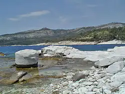 Le niveau d’exploitation des carrières du bord de la mer devait être assez proche de celui de l’eau pour qu’on les dote de murets constitués de roches laissées en place et servant pour ainsi dire de brise-lames.