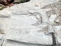 - ↑ C'est le marbre qui servit notamment à la construction du rempart de la cité.