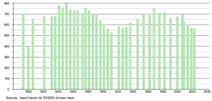 - ↑ Fiches Insee - Populations de référence de la commune pour les années 2006, 2007, 2008, 2009, 2010, 2011, 2012, 2013, 2014, 2015, 2016, 2017, 2018, 2019, 2020, 2021 et 2022.