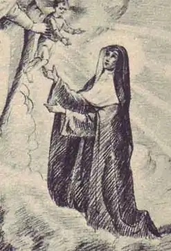 - La première gravure connue est datée de 1616, elle la représente couronnée de roses, lors de sa prise d'habit. Elle est l'œuvre d'un artiste flamand, Michel van Lochom.