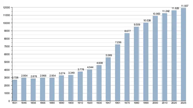 - Source : DGS - Remarque: 1831 jusqu'à 1980=recensement; depuis 1990=nombre d'habitants chaque 1er janvier[2]