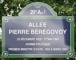 Le nom de l'allée rend hommage à Pierre Bérégovoy, homme politique français, Premier ministre de François Mitterrand.