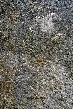 L'orthostate situé face à l'entrée sur la paroi nord de la chambre comporte deux sculptures en relief : une paire de seins (5 cm à 6 cm de diamètre) surmontant un collier. La forme de la dalle suggère une figure anthropomorphe avec un épaulement bien marqué à 0,45 cm du sommet, la partie supérieure bien arrondie et plane paraissant avoir été travaillée pour suggérer une tête[3]. Si cette représentation de la « déesse-Mère » est assez classique et se retrouve dans au moins deux autres allées couvertes du Trégor (Prajou-Menhir, Kerguntuil), le positionnement du collier sous les seins est tout à fait inhabituel[3].|