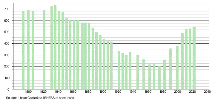 - ↑ Fiches Insee - Populations de référence de la commune pour les années 2006, 2007, 2008, 2009, 2010, 2011, 2012, 2013, 2014, 2015, 2016, 2017, 2018, 2019, 2020, 2021 et 2022.