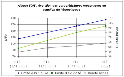 - H : écroui. Cet état ne s'applique qu'aux alliages à durcissement par écrouissage ;