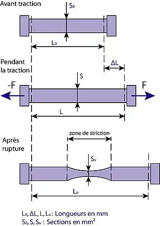 - la longueur ultime, longueur de la barre juste avant la rupture. La notation , longueur finale, est aussi utilisée ;
