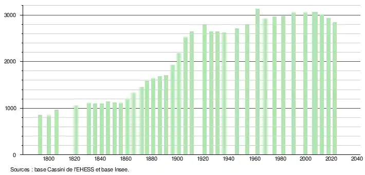 - ↑ Population municipale de référence en vigueur au 1er janvier 2025, millésimée 2022, définie dans les limites territoriales en vigueur au 1er janvier 2024, date de référence statistique : 1er janvier 2022.