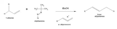 Le mécanisme réactionnel repose sur la génération catalytique d'espèces nucléophiles d'allylpotassium à l'aide de LICKOR (nBuLu/tBuOK) à partir d'alcènes[1].Il implique la formation d'un complexe η³-allylpotassium qui subit une transmétalation avec des silydiazènes suivie d'une décomposition libérant l’allylsilane souhaité.