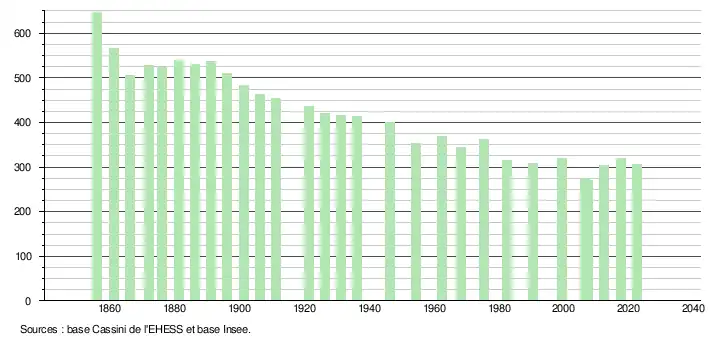 - ↑ Population municipale de référence en vigueur au 1er janvier 2025, millésimée 2022, définie dans les limites territoriales en vigueur au 1er janvier 2024, date de référence statistique : 1er janvier 2022.
