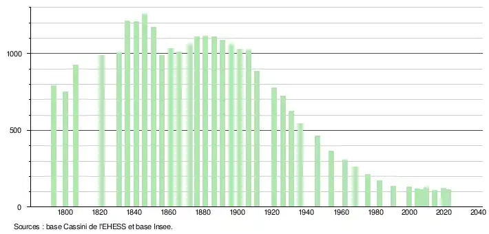 - ↑ Fiches Insee - Populations de référence de la commune pour les années 2006, 2007, 2008, 2009, 2010, 2011, 2012, 2013, 2014, 2015, 2016, 2017, 2018, 2019, 2020, 2021 et 2022.