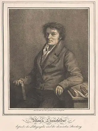 Inventeur, en , de la technique de la lithographie[2], afin d'imprimer son propre travail d’auteur, il devint imprimeur.