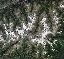 Localisation des sommets de plus de 4 000 m dans les Alpes pennines.
