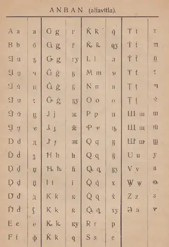 | а | б | в | ҩ | г | г̆ | ҕ | ҕ̆ | д | ꚁ |