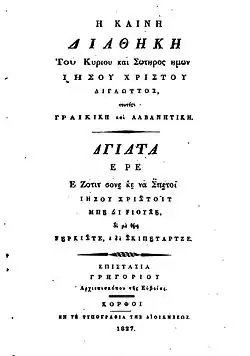 - (el + sq) Kostandin Kristoforidh, Η Καινη Διαθηκη του Κυριου και Σωτηρος ημων Ιησου Χριστου - Διατα ε ρε̄ ε Ζοτιτ εδε Σ̈πε̱τιμταριτ τε̱νε̱ Ϳισου-Κρισ̈τιτ, Constantinople, (lire en ligne) Traduction du Nouveau Testament en tosque.