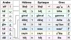 Alphabet consonantique de base ou étendu (abjad) et valeurs phonétiques