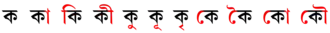 | U+09C0 | কী | কু | কূ | কৃ | কৄ | কে | কৈ | কো | কৌ | ক্ | ৎ | |||||