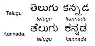 Comparaison entre l'alphasyllabaire kannada et l'alphasyllabaire télougou. Aujourd'hui encore, ces deux systèmes d'écriture sont similaires.
