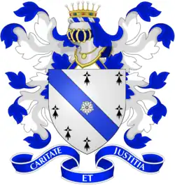 D’argent à la bande d'azur chargée en cœur d'une rose d'argent et accompagné de six mouchetures d'hermine de sable en orle Devise: Caritate et Justitia (Charité et Justice) |