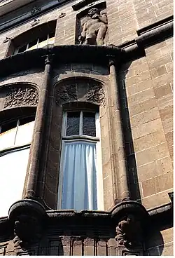 - belle façade en pierre de taille ornée de superbes oriels surmontés de personnages en bas-relief
