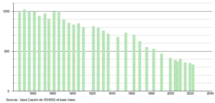 - ↑ Population municipale de référence en vigueur au 1er janvier 2025, millésimée 2022, définie dans les limites territoriales en vigueur au 1er janvier 2024, date de référence statistique : 1er janvier 2022.