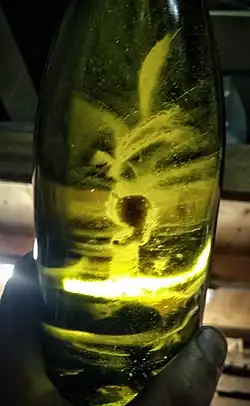 Les bouteilles fabriquées avec un verre coloré ou traité contre les ultraviolets, présentent une meilleure protection en bloquant les longueurs d'onde. Plus la teinte du verre bloque la lumière bleue, plus les vins sont protégés. Avec une efficacité croissante, on a donc les verres transparents, puis verts, puis marron. L'épaisseur du verre augmente également la protection.