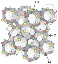 - l'hepta-aluminate de dodéca-calcium, 12CaO·7Al2O3 (C12A7) (mayenite) ;
