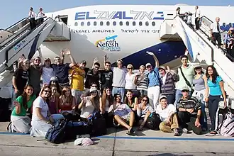 Charter de Nefesh B'Nefesh, organisation à but non lucratif, active aux États-Unis, au Canada et au Royaume-Uni, pour promouvoir l'Alya (aéroport de Lod, en décembre 2007)