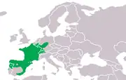 Cette espèce est présente dans le nord du Portugal et de l'Espagne, dans la plus grande partie de la France, dans le sud et l'est de la Belgique, Pays de Herve , des Pays-Bas, au Luxembourg, dans le sud et l'ouest de l'Allemagne ainsi que dans le nord et le centre de la Suisse[1],[2].