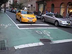 Un double-sens cyclable, parfois appelé « sens interdit sauf vélos » ou « sens unique limité »[43],[44] (dénomination belge) est un sens unique classique pour les véhicules motorisés, mais ouvert à la circulation des cyclistes dans les deux sens[45]. Le terme de « contresens cyclable » (utilisé en France il y a quelques années) est désormais déconseillé car il sous-entend (par analogie à un contresens de voiture sur une autoroute par exemple) que les cyclistes utilisant cet aménagement réalisent une infraction[46].