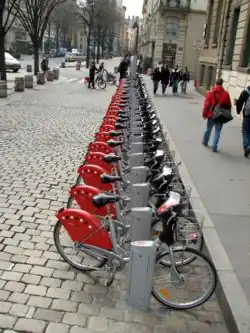 En France, le premier système de vélopartage implanté fut celui de La Rochelle et ses « vélos jaunes » dès 1974. Le premier système à gestion informatique fut celui de Rennes en 1998. Le plus important demeure le Vélib' de Paris, qui compte en 2008 plus de 20 000 vélos[58], en 2019 près de 16 000[59].