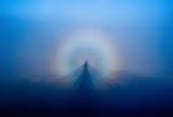 - ↑ Helen Ross, Mist, Murk and Visual Perception, New Scientist, 1975, p. 658. The Brocken Spectre (where one's shadow cast by the sun onto a cloudbank appears distant and gigantic)... The shadowy image appearing much farther away than it is, and consequently enlarged to a sufficient extent to give rise to such tales as the Grey Man of Ben MacDhui.