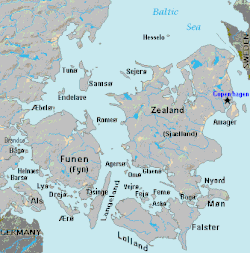 - ↑ (da) « Amager,1 - Den Danske Ordbog », sur ordnet.dk (consulté le ).