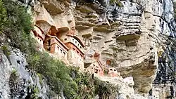- Revash : Mausolées appartenant à la culture Chachapoyas, à 20 min de Hierba Buena[16]. Situé à 2 800 mètres d'altitude, à flanc d'une falaise calcaire du Cerro Carbón, dans la vallée du río Utcubamba, district de Santo Tomás, province de Luya.