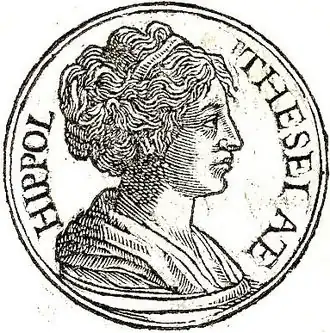 Le Scoliaste de Pindare (Néméennes, III, v. 64) rapporte des vers de l'Atthis d'Hégésinoos. Il y est dit que Télamon tua Mélanippé, sœur de la reine des Amazones, qui portait le baudrier d'or. D'après Paul Decharme[27], Hippolyté serait la même que Mélanippé: «Leur reine [des Amazones], Hippolyté ou Mélanippé, possédait comme insigne de sa royauté une ceinture qui lui avait été donnée par Arès»[28].