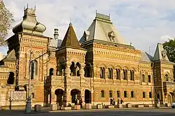 À l'origine se trouvait dans la rue Bolchaïa Iakimanka une maison carrée appartenant à Nikolaï Ivanovitch Loukianov[3], construite après l'incendie de 1812 dans le style Empire et embellie peu après de corniches et de colonnes[1]. Elle fut achetée en 1851 par Vera Igoumnova. Mais en 1895, Nikolaï Vassilievitch Igoumnov, riche industriel moscovite, fit construire un nouvel édifice par Nikolaï Pozdeïev, un architecte de sa ville natale Iaroslavl, en remplacement de la maison familiale qu'il jugeait indigne de sa position sociale[1]. Il fut bâti dans le style « pseudo-russe » à la mode à cette époque (que l'on retrouve avec le grand magasin Goum ou le musée historique[1]) avec des emprunts à différents styles architecturaux russes, comme celui d'anciens terems en bois ou d'églises orthodoxes, dont celles de la ville de Iaroslavl. La construction, mêlant pierre, briques et faïences, est composée de nombreux éléments décoratifs lui donnant un aspect assez massif, mais reflétant la « magnificence » de son propriétaire[6]. L'intérieur est lui aussi luxueux et regorge d'ornements polychromes, mais dans un style plus néoclassique, d'inspiration française[7], byzantine ou baroque.