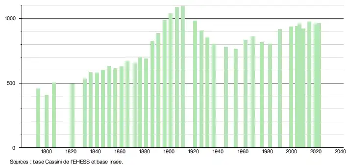 - ↑ Fiches Insee - Populations de référence de la commune pour les années 2006, 2007, 2008, 2009, 2010, 2011, 2012, 2013, 2014, 2015, 2016, 2017, 2018, 2019, 2020, 2021 et 2022.
