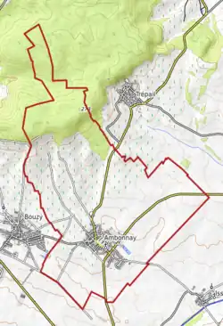 Le village d'Ambonnay se trouve dans un léger talweg, délimité par des champs à l'est et par le vignoble à l'ouest[19].