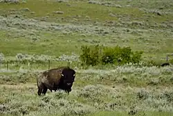Les prairies sont l'écosystème dominant des plaines intérieures du centre de l'Amérique du Nord. Le type de végétation principal est constitué de plantes herbacées comme les graminées, les Cyperaceae et autres plantes des prairies, plutôt que de la végétation ligneuse comme les arbres. Avant les années 1800, les bisons étaient une espèce clé de voûte de l'habitat des prairies d'herbes courtes indigènes, car leur pression de pâturage modifiait le réseau trophique et les paysages de manière à améliorer la biodiversité[1]. Les prairies comprenaient autrefois plus de 1 500 espèces de plantes, 350 espèces d'oiseaux, 220 de papillons et 90 de mammifères[2]. Le bison coexistait avec le wapiti, le cerf, le pronghorn, le renard véloce, le putois à pieds noirs, la Chevêche des terriers, l'ours noir, le loup et le couguar[3]. Les bisons, s'attaquant aux arbres avec leurs cornes, empêchent le remplacement de la prairie en forêt. Ils dispersaient les graines par leurs excréments[2]. Le paysage hétérogène ou varié créé par les bisons aide les oiseaux ; des millions d'oiseaux arrivent encore chaque année. Les Courlis à long bec sont des oiseaux de rivage migrateurs qui dépendent de trois types d'habitats dans la prairie - des herbes rases, des herbes hautes et de la boue - pour leur cycle de reproduction annuel[4]. Les pluviers montagnards utilisent les souilles des bisons comme sites de nidification. Les pygargues à tête blanche, les corbeaux et les pies d'Amérique consomment les carcasses de bisons lorsqu'ils meurent[2].