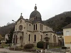De style « renaissance byzantine » (unique dans la région), elle a été érigée en centre ville en 1908 pour remplacer l’ancienne église devenue vétuste et difficile d’accès. C'est une réalisation des architectes Charles Lassire[30] et Lesueur, fortement inspirée (en beaucoup plus petit) par la basilique du Sacré-Cœur de Montmartre. Construite en 1907, le matériau retenu est le béton. L'une des toutes premières à être construite sous le nouveau régime de la séparation des Églises et de l'État, elle est inaugurée le et désacralisée en .