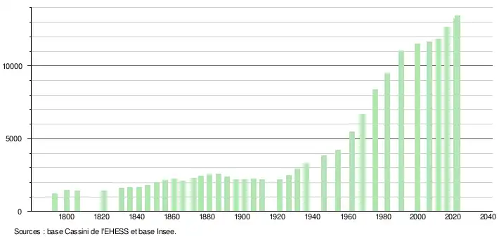 - ↑ Fiches Insee - Populations de référence de la commune pour les années 2006, 2007, 2008, 2009, 2010, 2011, 2012, 2013, 2014, 2015, 2016, 2017, 2018, 2019, 2020, 2021 et 2022.