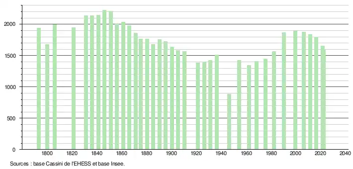 - ↑ Fiches Insee - Populations de référence de la commune pour les années 2006, 2007, 2008, 2009, 2010, 2011, 2012, 2013, 2014, 2015, 2016, 2017, 2018, 2019, 2020, 2021 et 2022.