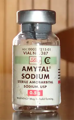 - ↑ (en) « Amytal Sodium (Amobarbital Sodium Injection): Uses, Dosage, Side Effects, Interactions, Warning », sur RxList (consulté le )